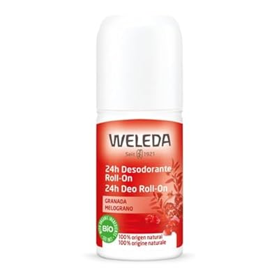 🇪🇸 Weleda -Desodorante Roll-On de Granada Neutraliza y Previene los Olores Corporales Desagradables 24 Horas de Protección 100% Natural Sin Sales de Aluminio Aroma Sensual y Femenino Vegano - 50 ml