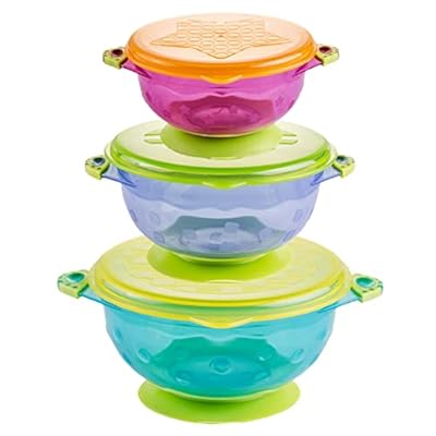 🇪🇸 Jzhen 3 Pcs Bol para Bebé con Ventosa Cuencos con Tapa y Ventosa Antideslizante para Bebé y Niños Bol Sellado con Tapa Alimentación para Bebés Apto para el Lavavajillas y el Microondas