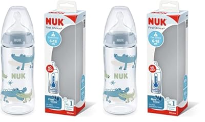 🇪🇸 NUK biberón First Choice+ Flow Control | 6-18 meses | Control de temperatura | Tetina de silicona | Válvula anticólica | Sin BPA | 360 ml | Azul | 1 unidad Paquete de 2