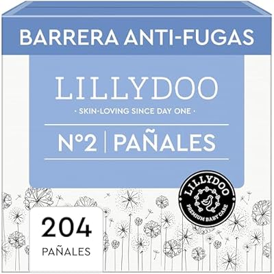 🇪🇸 Pañales LILLYDOO delicados con la piel - talla 2 4-8 kg caja mensual 204 unidades protección contra fugas suaves sin perfumes ni lociones y dermatológicamente probados