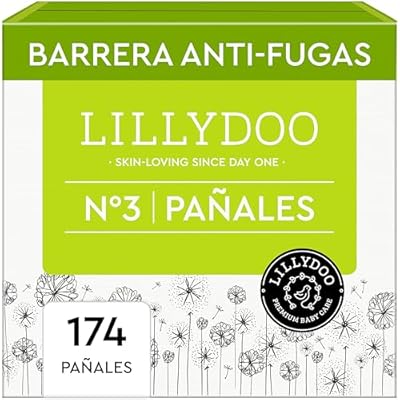 🇪🇸 Pañales LILLYDOO delicados con la piel - talla 3 6-10 kg caja mensual 174 unidades protección contra fugas suaves sin perfumes ni lociones y dermatológicamente probados
